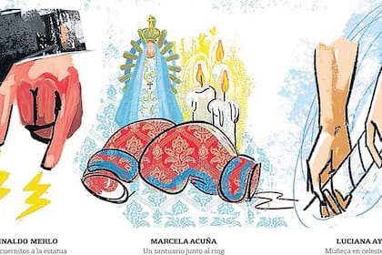 Para la boxeadora Marcela Acuña, todo es una gigantesca cuestión de fe. La Tigresa arma un santuario en su camarín en los minutos previos a cada combate. "Tengo la imagen de la Virgen de Luján, la Virgen de Catamarca y al Niño Jesús, además de otras que me acercan mis amigos y los seguidores", confiesa. Pero su devoción no acaba allí. "Desde que gané mi primer título argentino, en 2002, voy a Luján algunos días antes de la pelea y después vuelvo a ofrendarle a la Virgen el cinturón. Es una forma de agradecimiento, ya que siempre me fue bien", agrega.