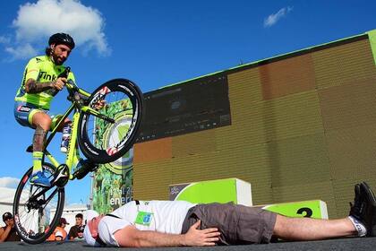 SAN LUIS.- A bordo de su bicicleta, volvió locos a todos trepándose al techo de la empinada casa de gobierno puntana, haciendo equilibrio en la varilla de un puente o jugando con la humanidad de espectadores reclutados como asistentes. Por esos y otros trucos que combina con un carisma entrador, Vittorio Brumotti fue el showman del Tour de San Luis.