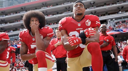 Kaepernick fue el primer jugador en hincar la rodilla en el suelo durante el himno nacional. "No voy a levantarme para mostrar orgullo por la bandera de un país que oprime a la gente negra y a la gente de color. Para mí, esto es mayor que el fútbol y sería egoísta de mi parte mirar a otro lado", explicó entonces.