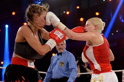 Carver es modelo alemana y triunfa en Estados Unidos. Dejó el yoga para dedicarse al deporte de los guantes y el sábado protagonizó el "Celebrity Boxing 2014". Peleó contra Melanie Müller y a juzgar por las imágenes cambiaron golpe por golpe.