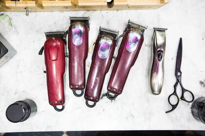 Mientras otros peluqueros comunes y silvestres se manejan con dos máquinas, Casale desfunda, solo él, 17 maquinitas. "Y las uso todas, eh", jura.