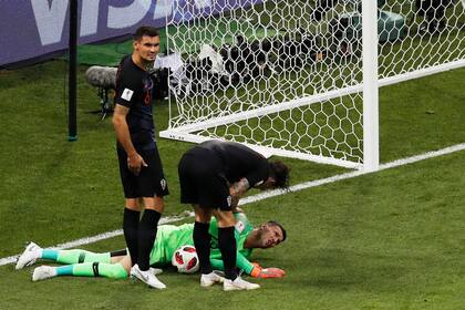 Subasic, en el suelo con muchísimo dolor. #CRO hizo diez segundos antes el último cambio del tiempo reglamentario. Si tiene que salir, deberá atajar un compañero los pocos minutos que quedan hasta el suplementario