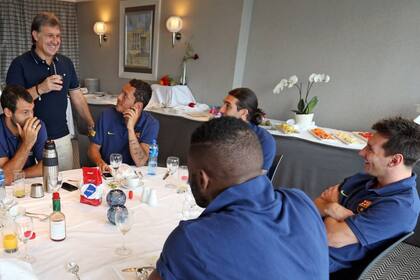 El progresivo desembarco de Gerardo Martino en Barcelona completó ayer otro paso, el último antes de que sea el nuevo director técnico en pleno ejercicio de sus funciones. Tras la presentación oficial de anteayer en Barcelona, el Tata viajó junto al director deportivo Andoni Zubizarreta a Oslo. Allí fue hasta al hotel donde ayer estaba hospedado el plantel, para compartir el primer encuentro con los jugadores. Se estrechó las manos con cada uno de ellos durante el desayuno, unas horas antes de que Barcelona goleara 7-0 a Valerenga. Charló de manera distendida y animadamente mientras lo invitaban con mate cebado con yerba argentina en una mesa que compartían Messi, Mascherano, el arquero Pinto, Adriano y el camerunés Song. Hubo intercambio de sonrisas, frases corteses y recuerdos de vivencias. Luego se sentó a la mesa con Zubizarreta y todo el staff del cuerpo técnico de Barcelona que permanece tras la desvinculación de Tito Vilanova.