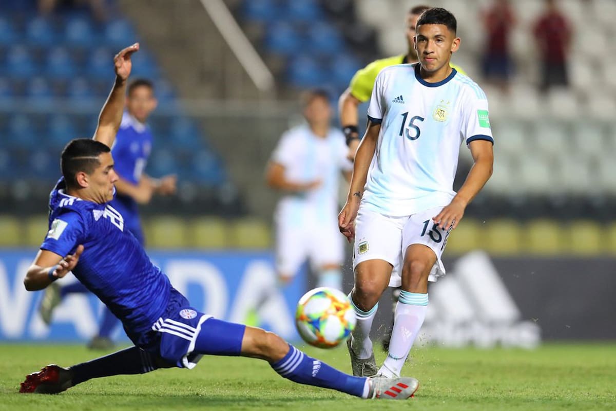 El duelo sudamericano empezó con la presión alta por parte de Paraguay, con la idea de no dejarle la iniciativa a la Argentina, pero el seleccionado albiceleste se asentó mejor con el paso de los minutos a partir de un juego más prolijo. Paraguay intentó atacar con más rapidez, en la búsqueda de Torres y Duarte, pero fue el conjunto argentino el que impactó primero. Llegó por primera vez con riesgo con un remate de Palacios desde la medialuna que obligó a la estirada del arquero rival. Enseguida llegó el 1-0: desborde de Vera por la derecha y centro cómodo para el cabezazo de Zeballos a espaldas de la defensa guaraní y por el primer palo de González.