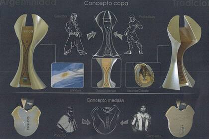 Los principales conceptos del trofeo unieron al gaucho y al futbolista. Además tiene detalles de la Bandera Nacional, la guarda pampa y la herradura de un caballo. En tanto, las medallas se basaron en el poncho tradicional de los gauchos y la camiseta de la Selección Argentina.