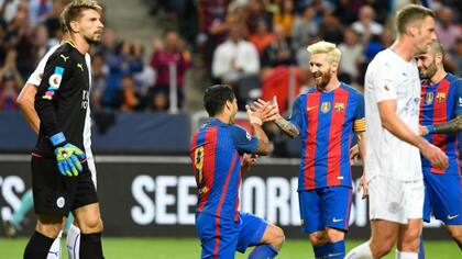 ESTOCOLMO, Suecia.- Barcelona ganó su segundo partido de pretemporada en un duelo de campeones. Los catalanes, con Lionel Messi de titular y capitán, superaron 4 a 2 a Leicester , ganador de la última Premier League.