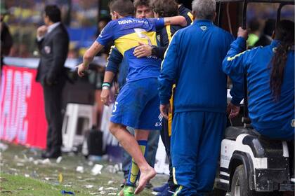 Esta vez, Gago debió irse antes del final del primer tiempo, a causa de una lesión en el tobillo, que se produjo mientras maniobraba dentro del área de Boca. Lo que en principio parecía una infracción de Lucas Alario fue, en realidad, un problema físico que sufrió el mediocampista al tratar de realizar un giro.