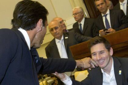 "Por primera vez hay una persona que tiene más éxito que Messi", bromeó Buffon, luego de dejar de lado la solemnidad del protocolo.