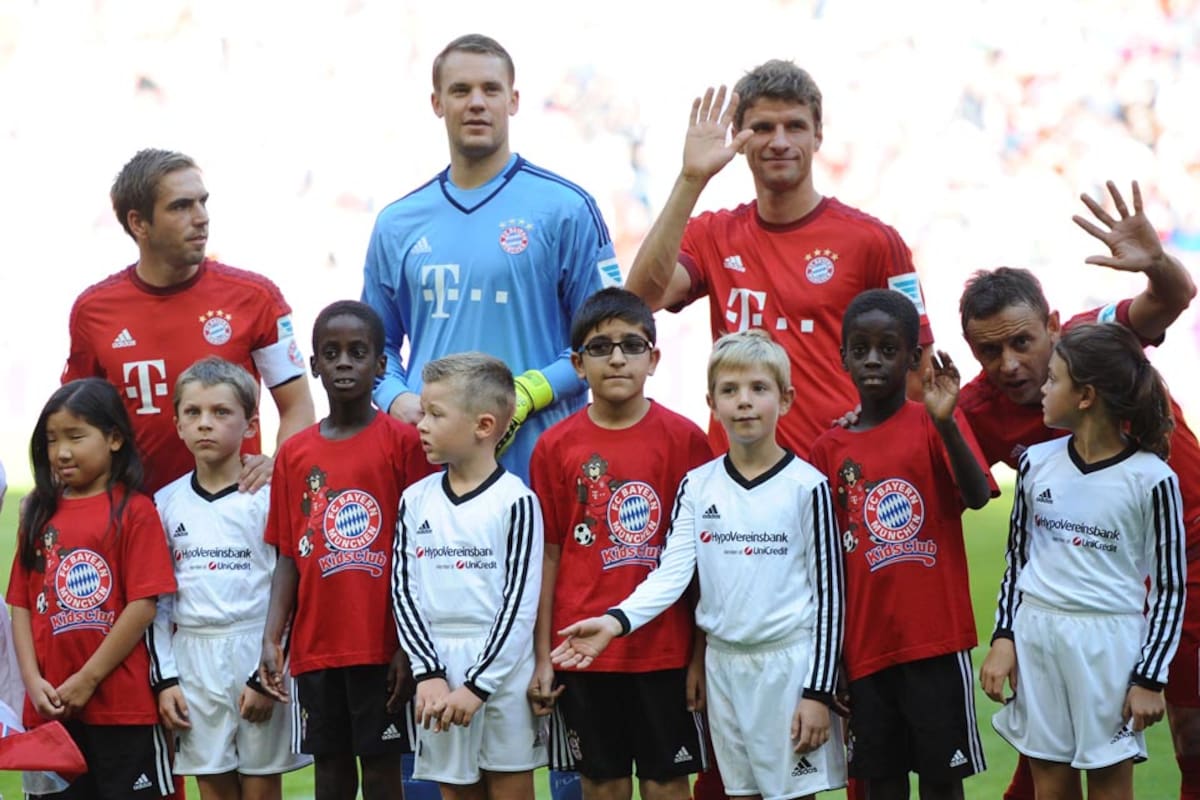MUNICH (dpa).- Las estrellas del Bayern Munich salieron hoy a la cancha en el estadio Allianz Arena de la mano de niños refugiados para demostrar su solidaridad hacia las decenas de miles de personas que están llegando a Alemania en busca de paz y seguridad.