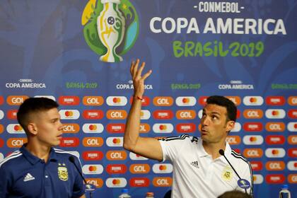 El técnico de la selección estuvo acompañado por Juan Foyth, pero todo estuvo concentrado en Scaloni. Por eso soltó algunas frases que muestran que hay un grupo que sabe de las urgencias que tienen por delante: "Para nosotros la Copa no empezó. La idea futbolística es jugar en campo rival y recuperar la pelota rápido, como se hizo en el segundo tiempo contra Colombia. El ánimo está bien".