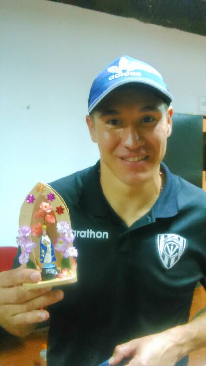 Azcona parece tranquilo. "Lo es", corrobora un integrante del cuerpo técnico que comanda el uruguayo Pablo Repetto. "No habla tanto adentro de la cancha como lo hace afuera. Y los compañeros lo siguen." Tanto lo siguen que le otorgaron el rol de dirigir las arengas, un rito preciado entre los futbolistas. El arquero, más que exaltar los ánimos con frases de guerra o venas inflamadas, elige rezar. "Soy devoto del Divino Niño Jesús y de la virgen de Caacupé", cuenta, mientras un rosario se puede ver colgado de su cuello. Y enseguida saca de su mochila una réplica de esa virgen, que lo acompañó al Monumental.