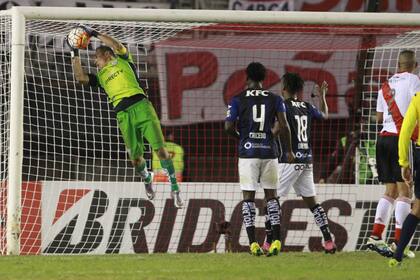 La estadística es abrumadora: River remató 37 veces. Doce de esos tiros fueron al arco: uno terminó en el gol de Lucas Alario y los otros 11 fueron repelidos por Azcona. De todas sus atajadas, elige como la mejor un cabezazo que le sacó a Iván Alonso "con las uñas".