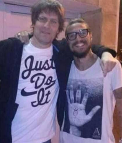 Osvaldo no estaba ni cerca de jugar en Boca, pero ya mostraba signos de fanatismo con los xeneizes. Además, se dio el lujo de abrazar a su ídolo Juan Román Riquelme.