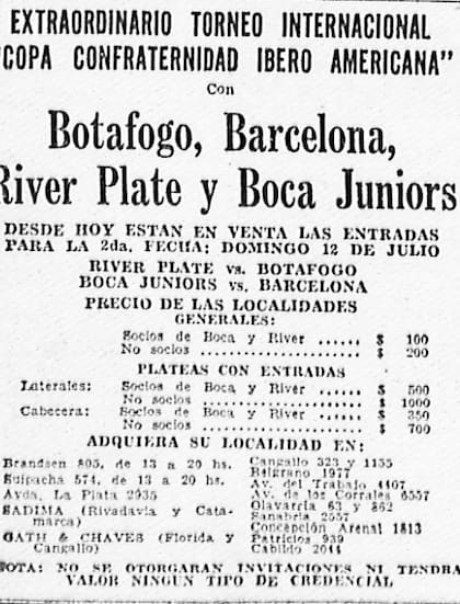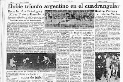Pero mejor volver a aquella tarde en el Monumental. Se jugaba por primera vez la Copa Iberoamericana con River, Boca, Barcelona y Botafogo, de Brasil, un cuadrangular de todos contra todos en Núñez. Ese 9 de julio, con entradas prácticamente agotadas y 9.945.000 pesos de recaudación, la jornada se abrió con la victoria de los xeneizes por 1-0 ante los brasileños, que ese día no contaron con Garrincha, quien estaba resolviendo temas impositivos en Río de Janeiro.