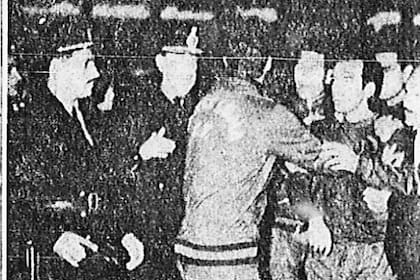 El árbitro Ventre cobró una infracción de Olivella a Pinino Mas. Los jugadores de Barcelona, enojados, fueron a reclamarle al juez. Benítez le aplicó "un fuerte empellón" a Ventre, quien lo expulsó. "Fue perfectamente justificada", se escribió al día siguiente. El jugador blaugrana no dejaba la cancha y debió intervenir la policía. Los ánimos empezaban a caldearse y, cuatro minutos después, River consiguió el 2-1, un gol de Artime en posición adelantada…