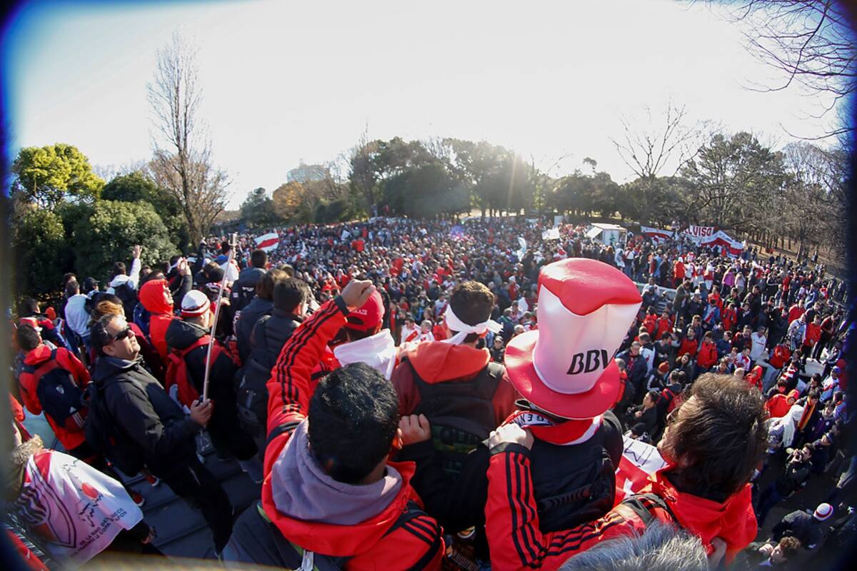 Unos 5000 fanáticos de los 15.000 que llegaron hasta aquí se juntaron como habían hecho el martes último en Osaka previo a la semifinal ante Sanfrecce Hiroshima. La idea inicial era realizar el encuentro en el cruce de Shibuya, el más emblemático de Tokio, uno de los puntos más transitados del mundo. Pero se desistió y la fiesta pasó a un parque como si fuera Palermo, también en la zona de Shibuya.
