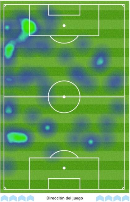 Defensivamente, Lanús transforma el 4-3-3 en un 4-1-4-1, como se ve en las imágenes de dos pasajes distintos ante Boca. Hay un gran sacrificio de los wines Mouche y Acosta , que retroceden y pasan la línea de la pelota para tapar las proyecciones de los laterales. El equipo trata de presionar ante la pérdida, pero es muy veloz también en el retroceso. Salvo Sand, todos los demás lograr reagruparse para defender de frente al balón. Acosta hizo un gran recorrido en el ida y vuelta por la banda izquierda (como se ve en el mapa de calor de Opta). El equipo espera en la línea de su área grande y ahí sale a bloquear al poseedor del balón en superioridad numérica.