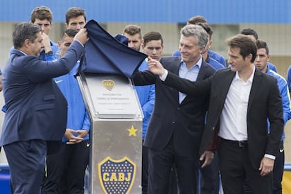 Y la última mega obra fue el Centro de Entrenamientos en Ezeiza, inaugurado el 3 de abril de 2017. Ubicado en el kilómetro 3 del Camino Real Presbítero González y Aragón, a 31,8 kilómetros de la Bombonera, el complejo es utilizado para el entrenamiento y la concentración de las divisiones juveniles del club. La obra demandó unos 25 meses de trabajo. En sus 3000 metros cuadrados cubiertos funcionan 11 canchas, ocho vestuarios para jugadores, cinco camarines para técnicos, médicos y árbitros; una planta de tratamiento de agua potable, salas de video, consultorios, gimnasios, comedores, oficinas y depósitos. La idea de Angelici era que el centro lleve el nombre de Macri, pero el presidente argentino saliente dijo en su momento que prefería evitarlo porque estaba en contra del "personalismo y los mesianismos". La inversión inicial para el predio, en 2013, fue de 60.000.000 de pesos.