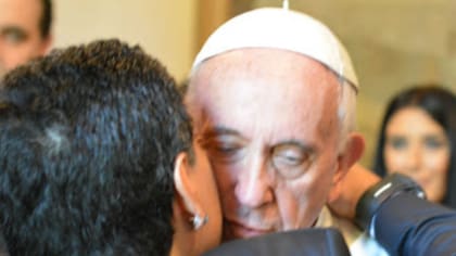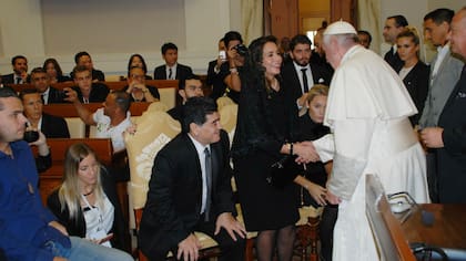 Horas antes del match benéfico, padre e hijo, así como los demás futbolistas que participarán en el evento por la paz, fueron recibidos por el Papa en la Casina Pío IV, sede de la Pontificia Academia de Ciencia Sociales, en el Vaticano. Allí, en un breve discurso, Francisco agradeció la participación de los jugadores en un partido que “será por el bien de mucha gente”. Además, reiteró el valor del deporte para apoyar una educación y una cultura de paz. “Estoy convencido de que hoy no se puede pensar en una educación sin el deporte. El deporte es un camino de educación, de promoción humana, de madurez de las personas, de las familias y de los países”, dijo Francisco. “Les agradezco mucho, gracias por los que hacen por los chicos, la paz, la amistad entre los pueblos... Esto es hacer paz”, agregó, en medio de los aplausos de los presentes.