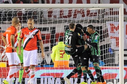 Aunque debe el partido ante Defensa y Justicia, que puede achicar la diferencia, River no pudo mantener el ritmo ganador y le perdió pisada a San Lorenzo y Boca, que ahora están a seis unidades en el torneo de Primera División. En el Monumental, en una tarde de festejos por la conquista de la Copa Libertadores, los Millonarios cayeron por 1-0 ante San Martín de San Juan y dejaron pasar la chance de acercarse a la cima. Facundo Pumpido, sobrino del ex arquero Nery, marcó el único tanto del partido.