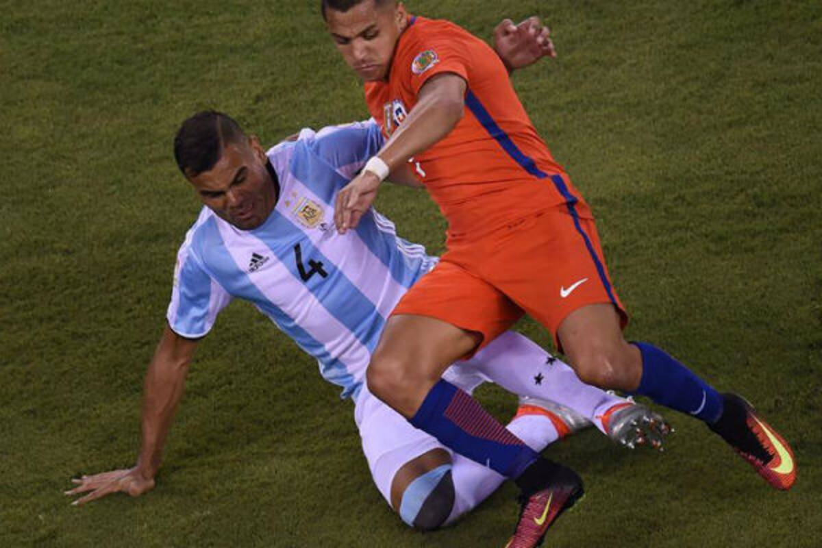 #CopaAmerica El pisotón de Mercado sobre Alexis Sánchez. ¿Qué te pareció la jugada? El árbitro no sancionó nada.https://t.co/jgAWiULEOB&— canchallena (@canchallena) 27 de junio de 2016
