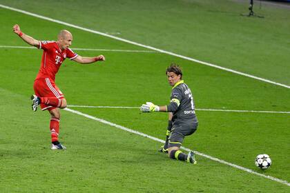 Mediados de mayo de 2012, el Bayern jugaba la final de la Champions contra el Chelsea ante su propia gente. Luego de un empate milagroso de Drogba, el holandés dispuso de un penal que haría delirar a las decenas de miles presentes en el Allianz Arena. El tiro fue detenido por Petr Cech, que luego se convertiría en héroe de la tanda de penales y alzaría a los ingleses campeones de Europa por primera vez en su historia. Hoy estas escenas quedaron atrás, para Robben todo es festejo.
