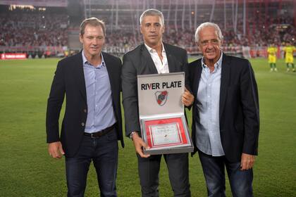 Y un día, el regreso ocurrió. Hernán Crespo volvió a pisar el césped del Monumental, ya no como jugador sino como director técnico, y fue homenajeado con una plaqueta que le entregó el presidente de la institución, Rodolfo D'Onofrio. El ahora entrenador de Defensa y Justicia sintió el pasto del club de Nuñez en el marco del encuentro ante River, por la fecha 22 de la Superliga.