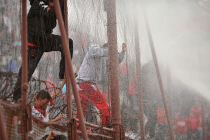 Sin embargo, a los 24 minutos, los hinchas redoblaron la apuesta, rompieron una reja que les permitió pasar desde la popular a la platea Miravé, subieron al alambrado ubicado detrás de los bancos de suplentes y arrojaron piedras y otros proyectiles.