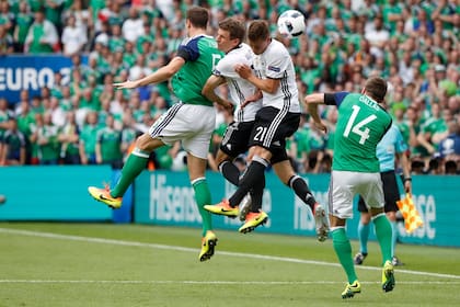 Mientras los jugadores norirlandeses corrían de aquí para allá ante el toqueteo de los alemanes, los hinchas desafiaban la intermitente lluvia con su clásico "Will Grigg's on fire", tema dedicado al delantero suplente Will Grigg, goleador del modesto Wigan Athletic, de la segunda división inglesa, que no jugó en la Eurocopa ni un minuto.