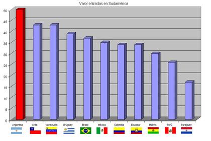 Los 50 pesos argentinos que costará cada popular para el torneo Clausura que comienza el viernes 10 están por encima de los valores de los tickets de las demás ligas que participan de la Copa Libertadores. Aunque, claro, también son muy inferiores a los precios de las principales ligas europeas: ver a Lionel Messi en el Camp Nou contra Rayo Vallecano, por ejemplo, cuesta 109 pesos (19 euros/25 dólares). Aunque Barcelona, como la mayoría de equipos europeos, dispone los precios según el rival. La entrada más barata para verlo contra Real Madrid es de 89 euros, más de 500 pesos.