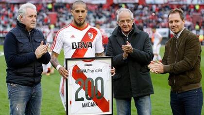 A los 31 años, Maidana simboliza el alma de la defensa de River, es el único jugador del actual plantel que sufrió el descenso y que también levantó la Copa Libertadores, un intocable para todos los técnicos que lo dirigieron en el club. Sin embargo, nunca había sido ovacionado de la manera que ayer 40.000 hinchas lo hicieron. ¿Por qué? Tal vez porque jamás levantó su perfil ni buscó trascender como un referente genuino. Lo de él fue personalidad aplicada al juego, desde el entendimiento de lo que pide cada cierre o despeje. “Estoy muy agradecido a toda la gente de River por la confianza que me brinda. Soy un privilegiado de estar en este club y que se me reconozca mi trabajo. Lo que viví hoy (por ayer) vale más que cualquier título”, dijo el defensor, quien en el cierre del partido fue protagonista de una jugada polémica que pudo haber cambiado el resultado. Al respecto agregó: “Tengo la mano pegada al cuerpo. Son criterios. El árbitro no cobró penal y creo que estuvo bien”.