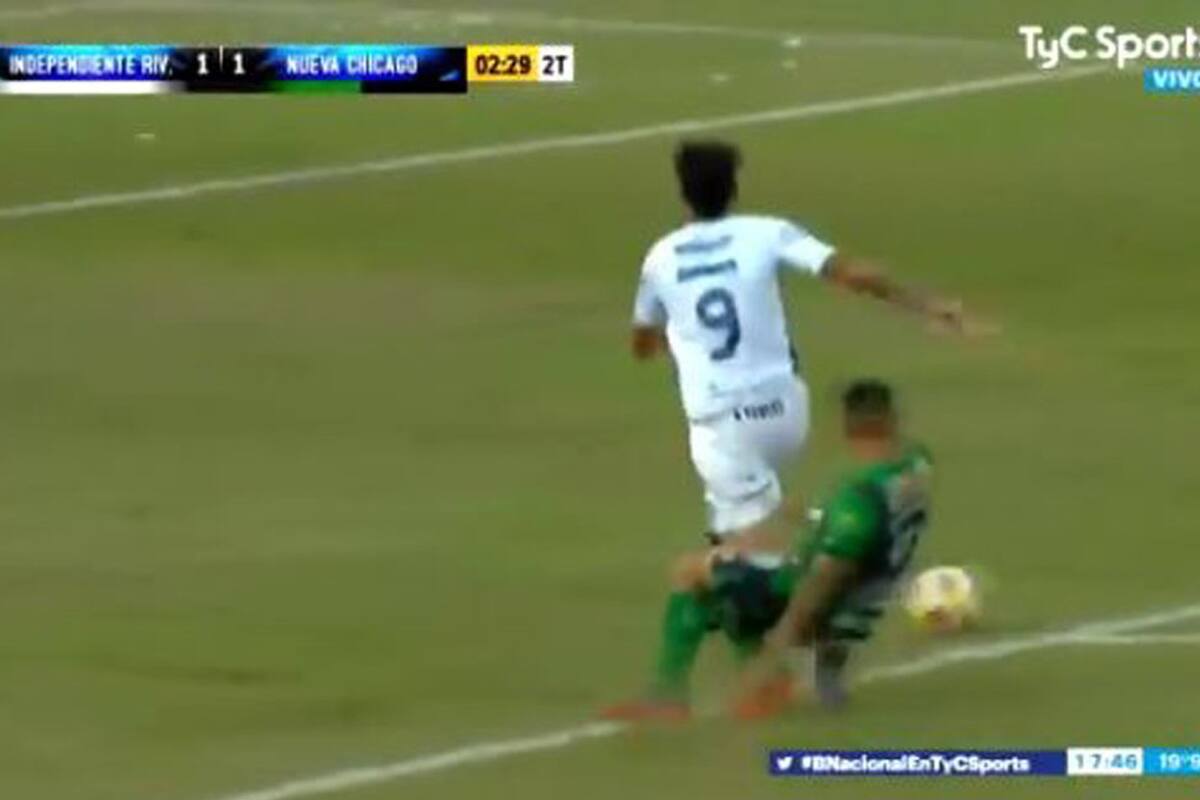 #BNacionalEnTyCSports [R]¡La polémica de la tarde! Insólito penal cobraron a favor de la Lepra en su victoria por 4-1 ante Nueva Chicago por la ida del reducido[R][R] pic.twitter.com/LmTIJY1ly1&— TyC Sports Play (@TyCSportsPlay) 4 de mayo de 2019