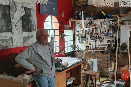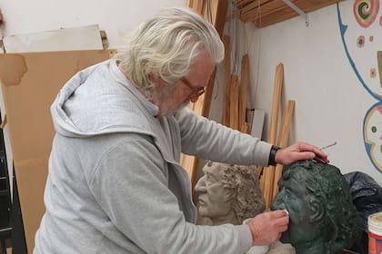 ROSARIO.- Hay una ronda en un taller de arte. Hay hijos, retratos, grabados, dirigentes de fútbol, tapabocas, expectativas, políticos, pinceles, bustos de arcilla, réplicas, paredes pintadas de rojo, afiches de muestras internacionales, murales, amigos, dibujos, café, una noche de invierno, cinco fotos de un exfutbolista en calidad baja y un artista: Marcelo Castaño. Todo está amontonado y apilado pero con un orden metódico y el metro y medio del distanciamiento social que la pandemia del coronavirus impone. El artista polifacético que fue restaurador de esculturas públicas de Rosario y ahora es docente jubilado de la escuela de Bellas Artes sabe que es una noche decisiva. Diez días después, dirá: "No le había contado a nadie que ya tenía la cabeza de la escultura. Me la jugué. Tomé coraje y les dije: ‘Por favor, vengan para acá’".