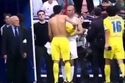 El 7 de mayo de 2006, Real Madrid y Villarreal empataron 3-3, por la fecha 37 de la Liga de España. Más allá del anecdótico resultado, ese partido entró en la historia del fútbol por ser el último de la máxima estrella del fútbol francés en un equipo (luego, disputó el Mundial Alemania 2006, en el que alcanzó la final, de la que fue expulsado por el famoso cabezazo a Materazzi). Fue reemplazado minutos antes de terminar el partido para llevarse una emotiva ovación. Sin embargo, él aguardó en la manga para cumplir con un deseo más: llevarse la camiseta de Riquelme. Y así fue, se encontraron en la mitad de la cancha, cerca de la línea lateral, e intercambiaron el 5 merengue y la 8 submarina.