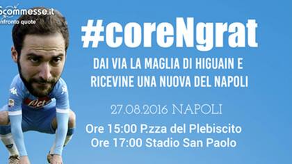El sábado próximo, cuando Napoli reciba a Milan por la primera fecha de la liga italiana, la oferta es que los hinchas puedan llevar su camiseta de Higuaín a la Plaza del Plebiscito o al estadio y canjearla por otra o por un artículo de similar valor de la nueva temporada. Serán puestos habilitados especialmente para ello. Un trueque para dejar atrás una situación que, lejos de cicatrizar, se intensifica.