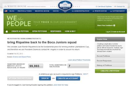 "Consideramos que Juan Román Riquelme es una pieza fundamental para ganar otra Copa Libertadores. Por eso, se le pide al presidente Obama que se comunique con el señor Angelici con el objetivo de asegurar su regreso", solicitaba el petitorio cargado en la Web de la Casa Blanca.