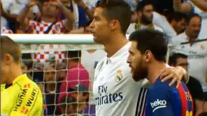 "Vamos", dijo el portugués, mirándolo. "¿Eh?", preguntó Messi. "Vamos", insistió el 7 del Madrid, quien luego le dio un abrazo a la Pulga en una imagen que rápidamente dio la vuelta al mundo. Todo esto por un informe que realizó el programa español "El día después", donde se lo escucha a Luis Enrique con un elogio: "Leo Messi es determinante hasta cuando está en su casa cenando".