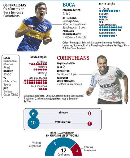 * Si Boca Juniors finalmente se queda con el torneo, será el título número 23 para Argentina, que es el país que más Libertadores ganó. Si Corinthians se consagra será la estrella número 16 para Brasil.