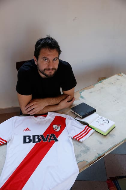 Martín Tibabuzo tiene 39 años y está en la planta alta de su casa en Colegiales. Porta una valija llena de camisetas de River, todas diseñadas por él. Este porteño, que es diseñador gráfico y terminó trabajando para Adidas casi de casualidad, diseñó las últimas 17 remeras millonarias y ya dejó confeccionadas las próximas cuatro. Martín hizo su primer dibujo de una camiseta de River cuando estaba en primer grado a los seis años. De más grande y ya recibido, garabateaba camisetas cuando se aburría en el estudio en el que trabajaba cuando el fútbol era sólo un hobbie en su vida. Hasta llegó a coser a mano una casaca rojiblanca para vivir la experiencia de completar el proceso. Todo cambió cuando empezó a hacer trabajos e instalaciones para Adidas. "Nos pagaban con un par de zapatillas y la comida", asegura.