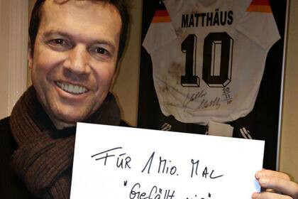 ¿Vuelve Lothar? Eso es lo que insinuó en su cuenta de Facebook ( www.facebook.com/lothar.matthaeus ) el ex futbolista alemán Lothar Matthäus. En su página oficial de la red social publicó que si llega al millón de "me gusta" volvería a jugar al fútbol. Sin acción en las últimas 13 temporadas, hace un par de años estuvo cerca de ser el DT de Racing.