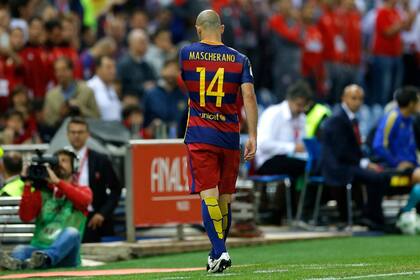 MADRID.- Barcelona y Sevilla definen la Copa del Rey en el Vicente Calderón y el equipo culé juega con diez hombres por la expulsión de Javier Mascherano. A los 36 minutos de la primera parte, el argentino tomó de la camiseta y bajó al francés Kevin Gameiro cuando estaba por ingresar en soledad al área. El árbitro Carlos del Cerro Grande no dudó y le mostró la tarjeta roja.
