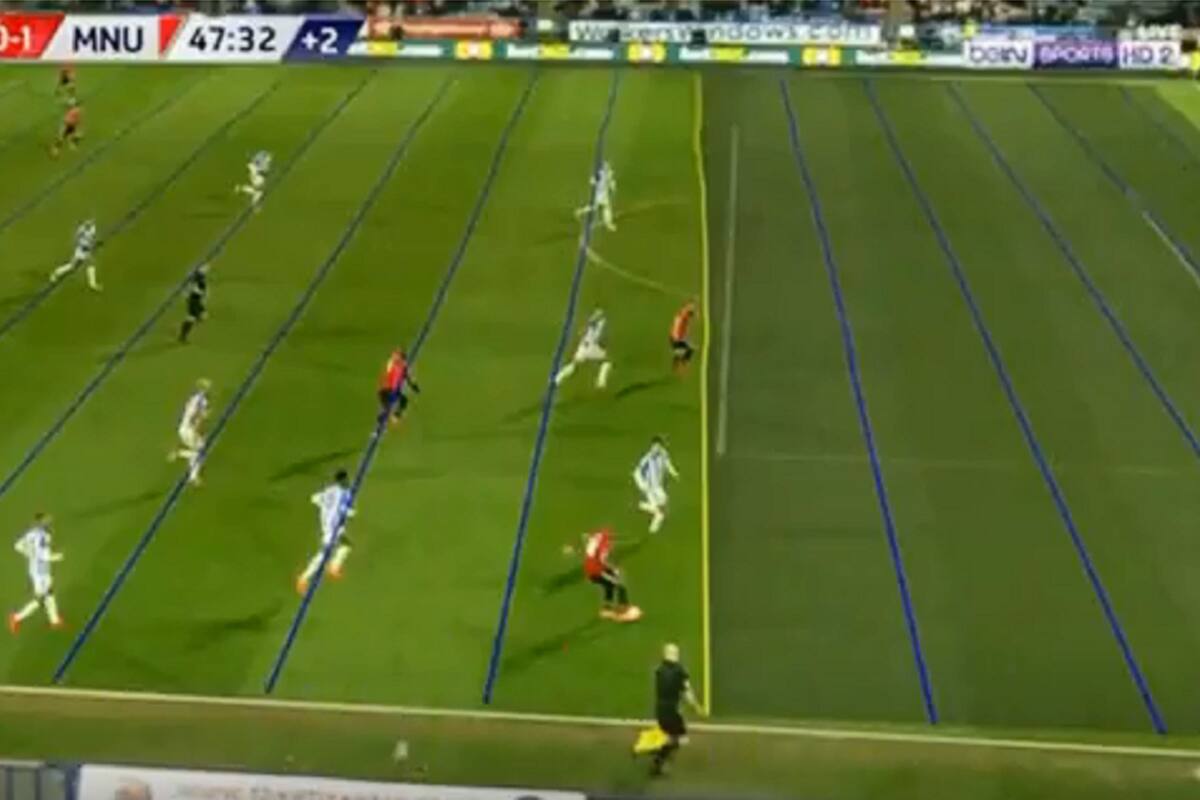 Fue entonces cuando se dio una situación insólita: en las pantallas del VAR aparecieron unas lineas visiblemente torcidas respecto de la escuadra de la cancha. Luego de exhibir esas líneas digitales pero que parecían hechas a mano, el VAR indicó que el jugador del United estaba en posición adelantada. El arbitro se inclinó por los dictados de la tecnología y anuló el gol, pero Mata aparecía correctamente habilitado.