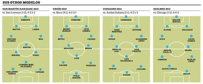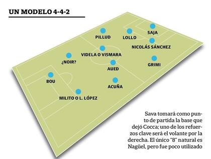 ¿Qué esquemas y características utilizó en los otros equipos? "No nos casamos con ningún sistema táctico, incluso he variado durante los partidos. Haremos lo mejor para afrontar cada partido", explicó ayer. En San Martín utilizó el 4-3-1-2; en Unión el 4-2-3-1 y el 4-3-3; en O’Higgins de Chile el 4-2-1-3 y, en su última etapa en Quilmes, varió entre el 4-4-2 y el 4-3-2-1. Por lo pronto, mientras define el próximo dibujo, ya avisó: "Quiero un Racing solidario, que ataque y defienda todos juntos, del primero al último". Le faltan algunos nombres, pero el modelo Sava ya está en marcha.