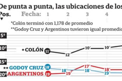 El torneo argentino ofrece toda clase de rarezas. Argentinos fue uno de los punteros en el arranque del campeonato, después de cuatro triunfos, un empate y una caída. Igualmente, en ese tiempo siguió en puestos de descenso; apenas en cinco fechas estuvo afuera de la zona roja. Godoy Cruz, que deberá contratar entrenador después de no renovarle el vínculo a Martín Palermo, eludió la parte baja de la tabla de los promedios de a ratos: algunas veces, quien se hundía era Argentinos, en otras ocasiones, quedaba emparejado en el puesto 18 con All Boys. El club de Floresta cayó en picada y en las fechas 12, 13, 14 y 16 compartió con los mendocinos el casillero 18, lo que obligaba a tener que jugar un desempate en el caso de que hubiera terminado la temporada.