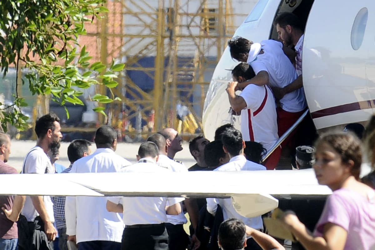 La aeronave aterrizó a las 15.30 en el Aeroparque Metropolitano 'Jorge Newbery' y los jugadores fueron los primeros en descender por la escalinata delantera, asistidos por un grupo de colaboradores del club y de la estación aérea sobre la pista de aterrizaje.