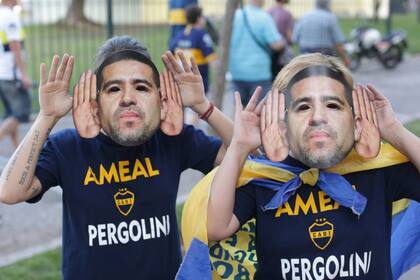 Según pudo confirmar LA NACION, varios fanáticos de Boca se vieron impedidos de ingresar a la Bombonera con unas caretas de cartón que tenían el rostro del ídolo y sus dos manos junto a las orejas, haciendo el famoso gesto del Topo Gigio, que patentó en 2001, cuando se lo dedicó a Mauricio Macri, por entonces presidente del club.