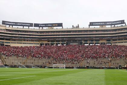 El Monumental de Lima ya tiene el color de una final. Mientras las cabeceras son una para cada equipo, en las plateas conviven las camisetas de River, de Perú y de Flamengo, sin que se hayan registrado inconvenientes hasta ahora. El micro que traslada a la delegación millonaria transcurre los últimos metros antes de ingresar a la explanada del estadio.
