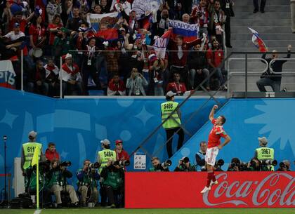 Dzyuba recibió un pase largo y tras pararla de pecho, definió a un costado. El local pone un pie y medio en octavos de final. Egipto, casi eliminado.