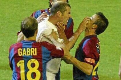 En aquel partido del 19 de abril de 2003, jugado en el Santiago Bernabéu, 'Zizou' encaró a Puyol; se quitó la marca del zaguero catalán con un codazo, lo que derivó en el reclamo airado de Luis Enrique, con manotazos de un lado y del otro, todo bajo la mirada del árbitro Muñiz Fernández, que por aquel incidente 'perdonó' al volante francés. En ese mismo encuentro, Roberto Bonano -hoy, segundo entrenador de Eduardo Berizzo en Celta- y Juan Pablo Sorin fueron titulares en Barcelona; Luis Enrique marcó el gol de Barcelona y a diez minutos del final fue reemplazado por Juan Román Riquelme.