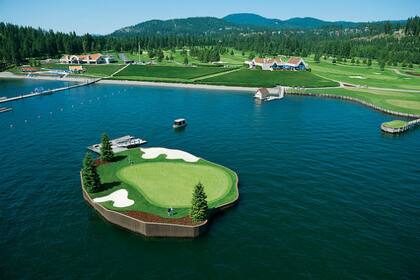 En Idaho, Estados Unidos, aparece otro par 3 que llama la atención. Para alcanzar el green hay que sobrevolar el agua. Algo que parece común, de no ser porque el green es literalmente una isla. Allí se puede acceder en un bote y tiene un punto a favor para quienes no quieren viajar mucho: la superficie es motorizada por lo que se peude hacer más o menos largo el hoyo.